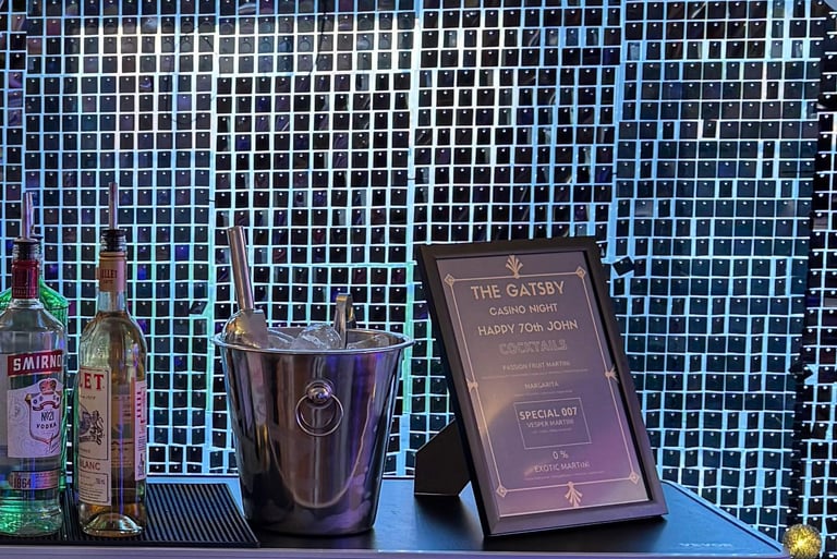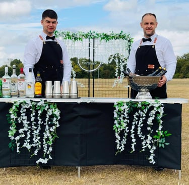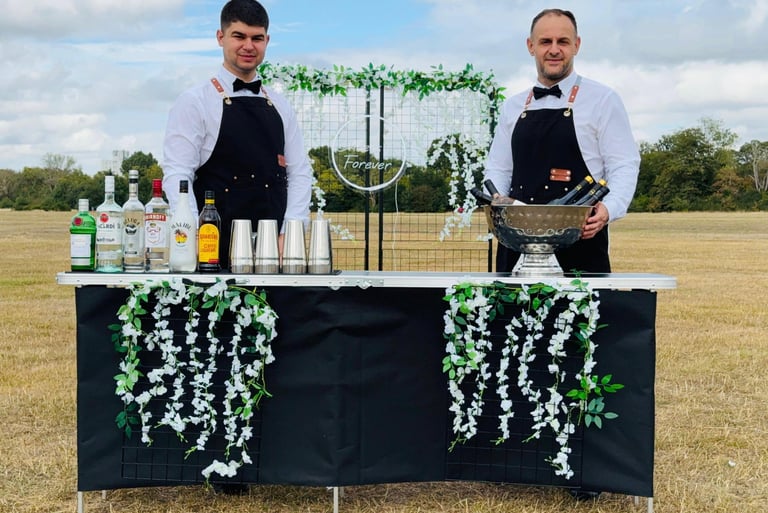 The minimum pre-paid amount is £1,200, which includes two professional staff members, full glassware, a mobile bar, and all required licensing.