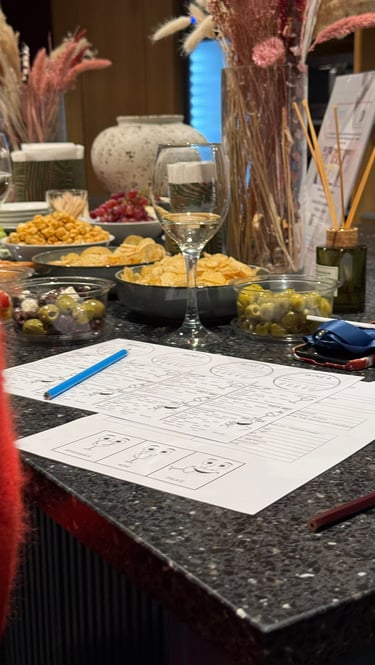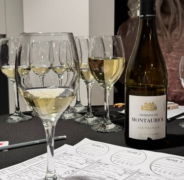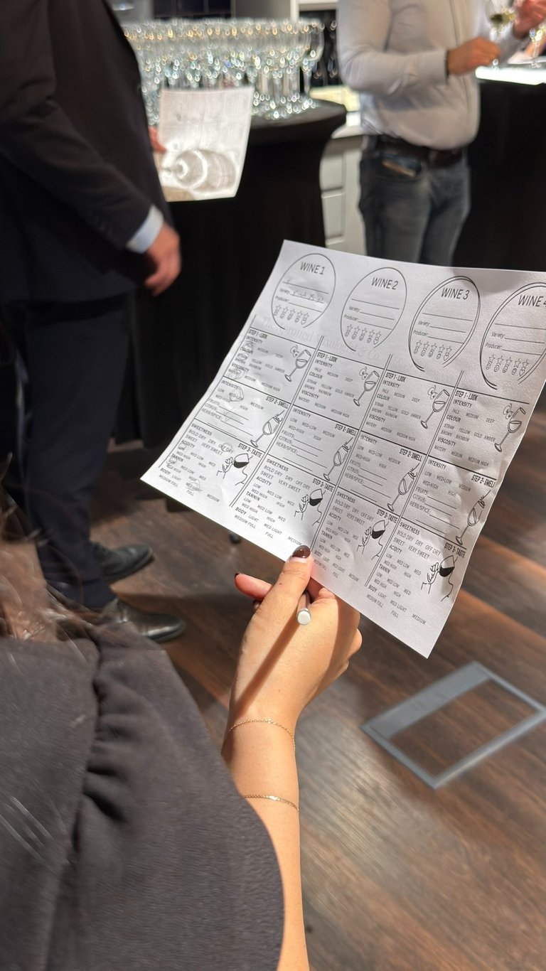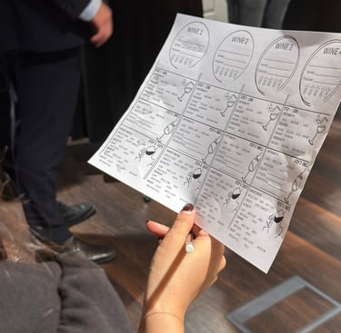 During the tasting, guests will explore each wineâs colour, aroma, and palate in a classic, engaging manner. For the second wine, the sommelier will guide the group as they taste together. By the third wine, guests will taste collaboratively, answering questions about wine notes, colour, and aromas. Participants will be awarded cards for their responses and engagement.